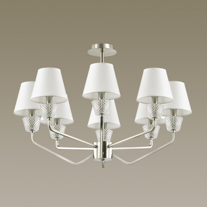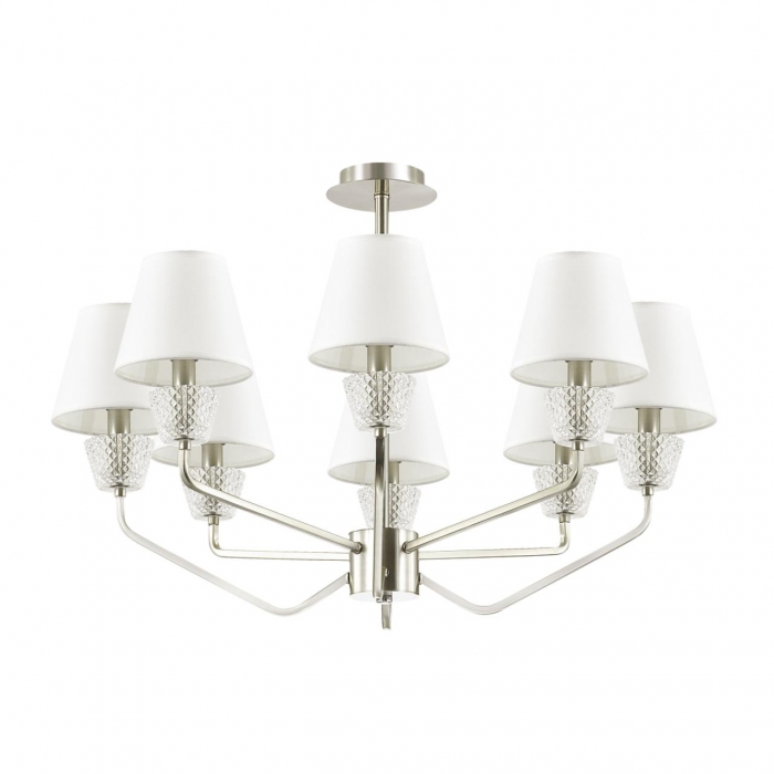 Люстра потолочная потолочная LUMION ABIGAIL 4433/8C от бренда Lumion , для комнат площадью 12 - 16 м2. Вид визуально: С абажурами. В цвете Серебро. Размер: выше 45 см. Хотите купить - обратитесь к нам.